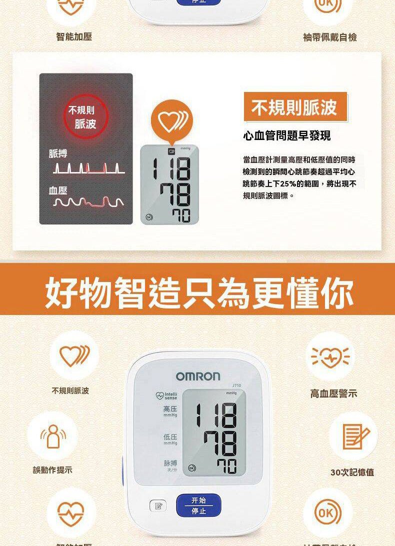 可下單 日本原裝進口 歐姆龍OMRON血壓計J710 上臂式 醫院同款